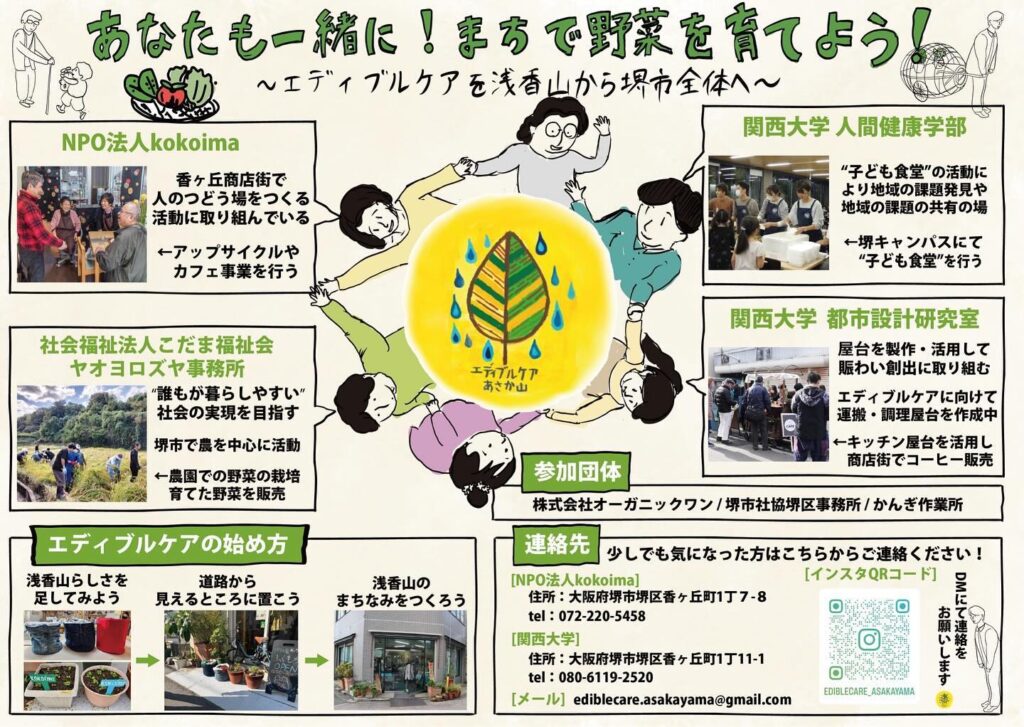 大学をはじめ、様々な団体と協働しながら進めているプロジェクトです。この活動を浅香山の香ヶ丘商店街から、堺市全体に広げたいと思っています!